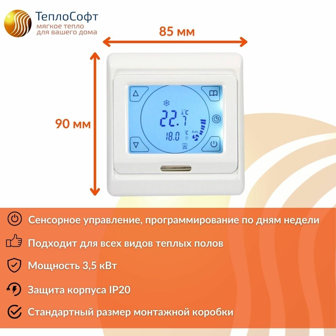 Купить Теплый пол электрический под плитку 3,5 м2 с сенсорным терморегулятором / Нагревательный мат Теплософт Профи 3,5 м.кв.