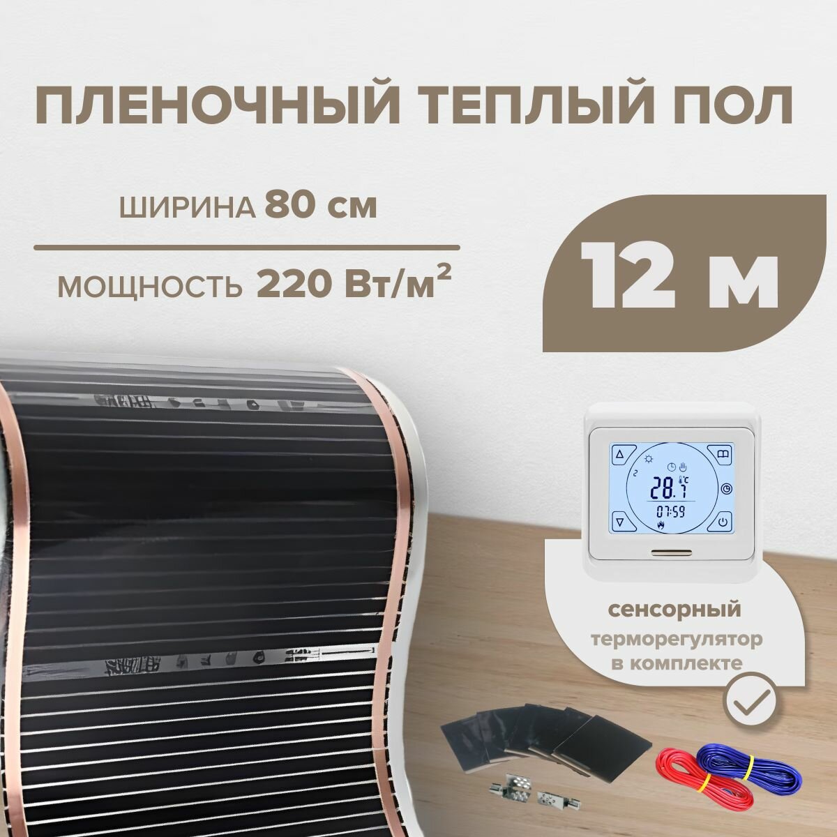 Пленочный теплый пол 12 м. п. комплект ширина 80см с Сенсорным терморегулятором