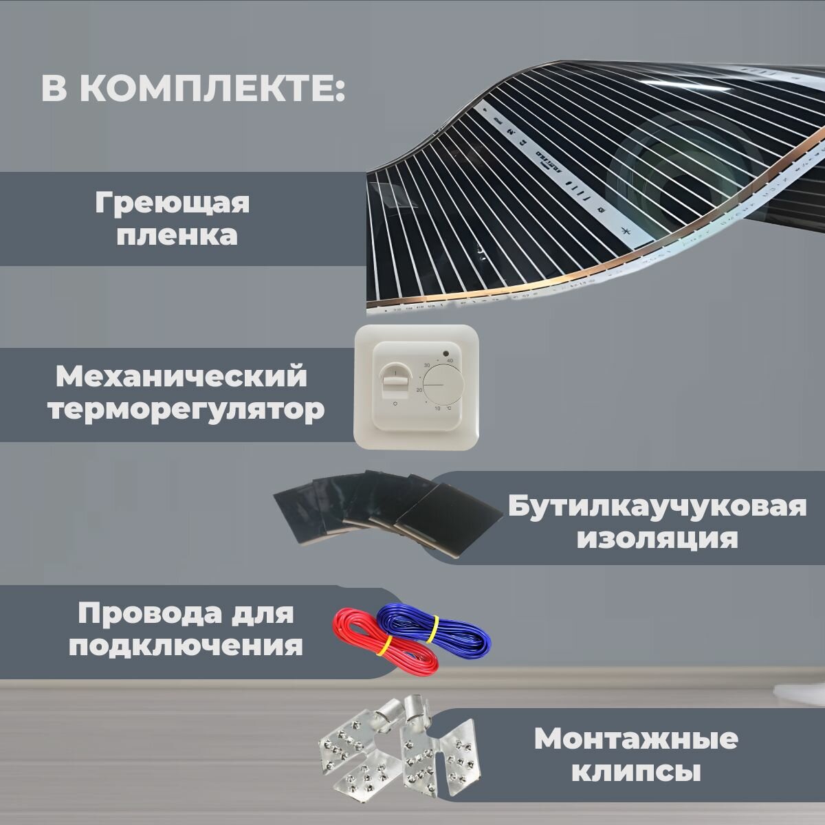 Пленочный теплый пол 10 м.п. комплект ширина 80см с электронным терморегулятором