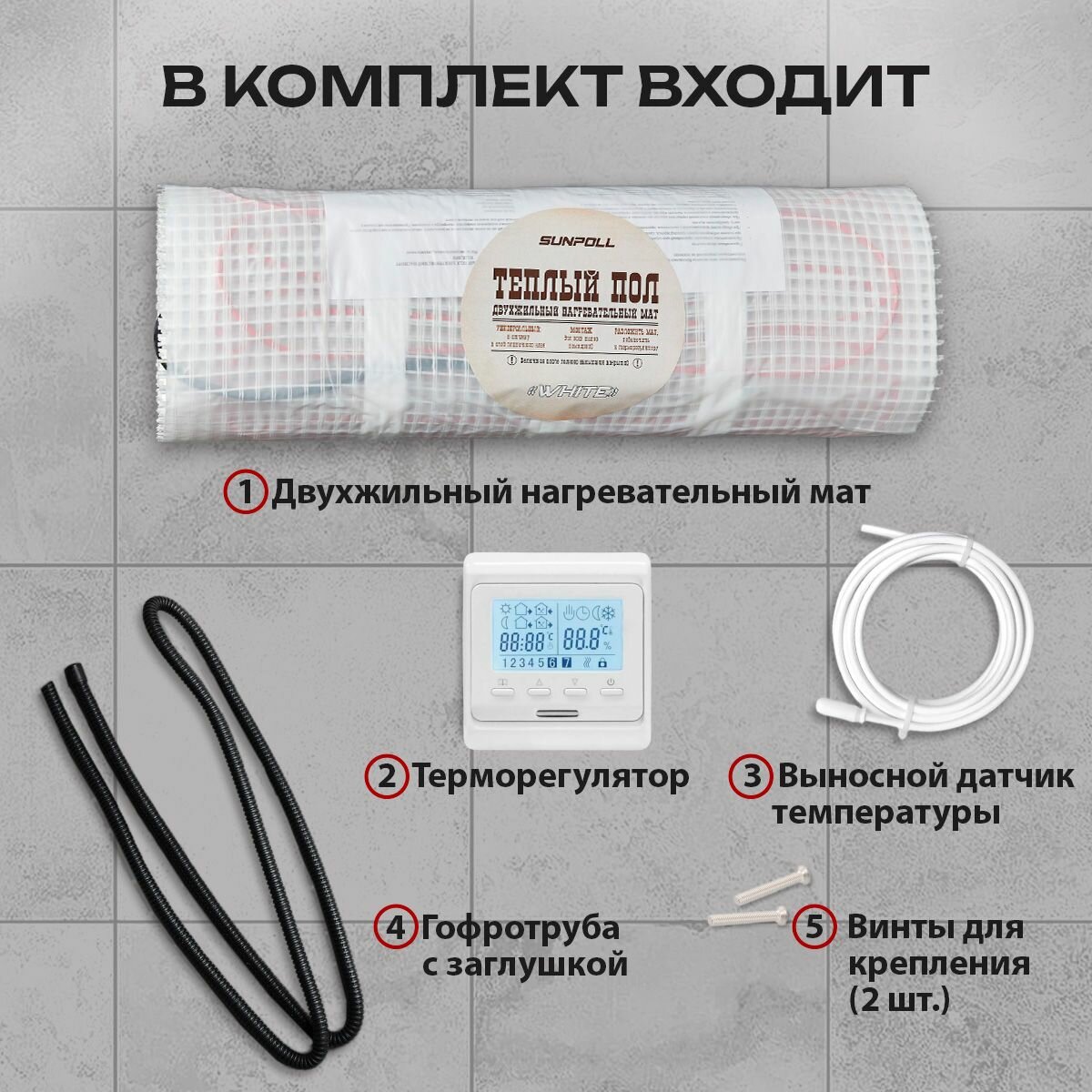 Теплый пол с терморегулятором под плитку электрический мат 1 м2