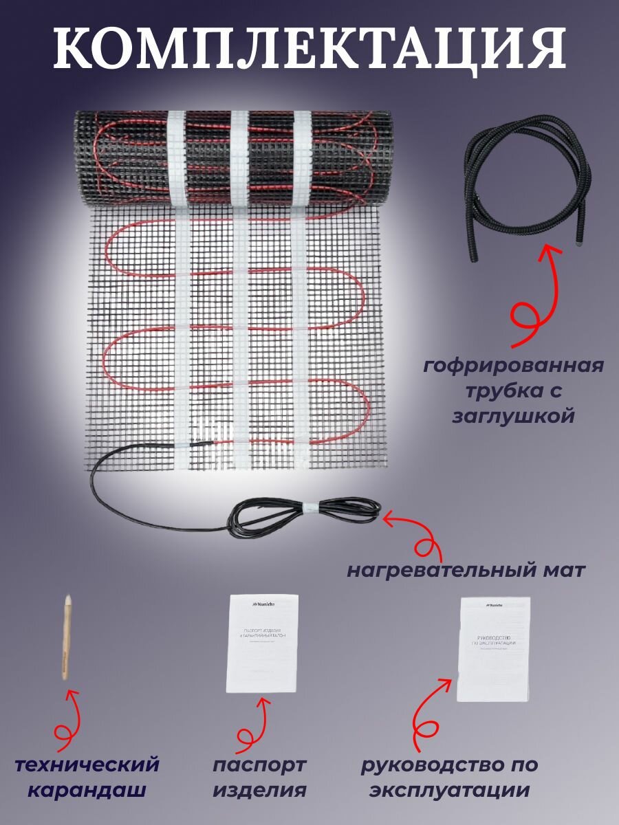 Электрический теплый пол под плитку NUNICHO 1 м2, 150 Вт/м2 двужильный экранированный нагревательный мат;