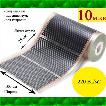 Инфракрасная пленка под ламинат, паркет Национальный Комфорт Теплый пол шир. 0,5м, длина 25м, (220 Вт/кв. м), 12,5кв. м.