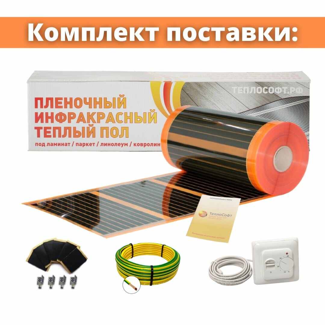 Саморегулирующийся пленочный теплый пол электрический Теплософт 13м.кв с терморегулятором