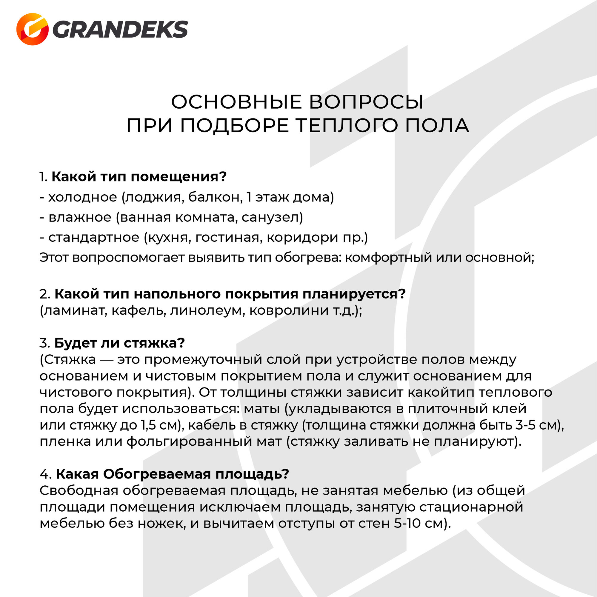 Теплый пол Grandeks G2 - 6,0 / 900. Площадь - 6,0 м2, мощность - 900 Вт