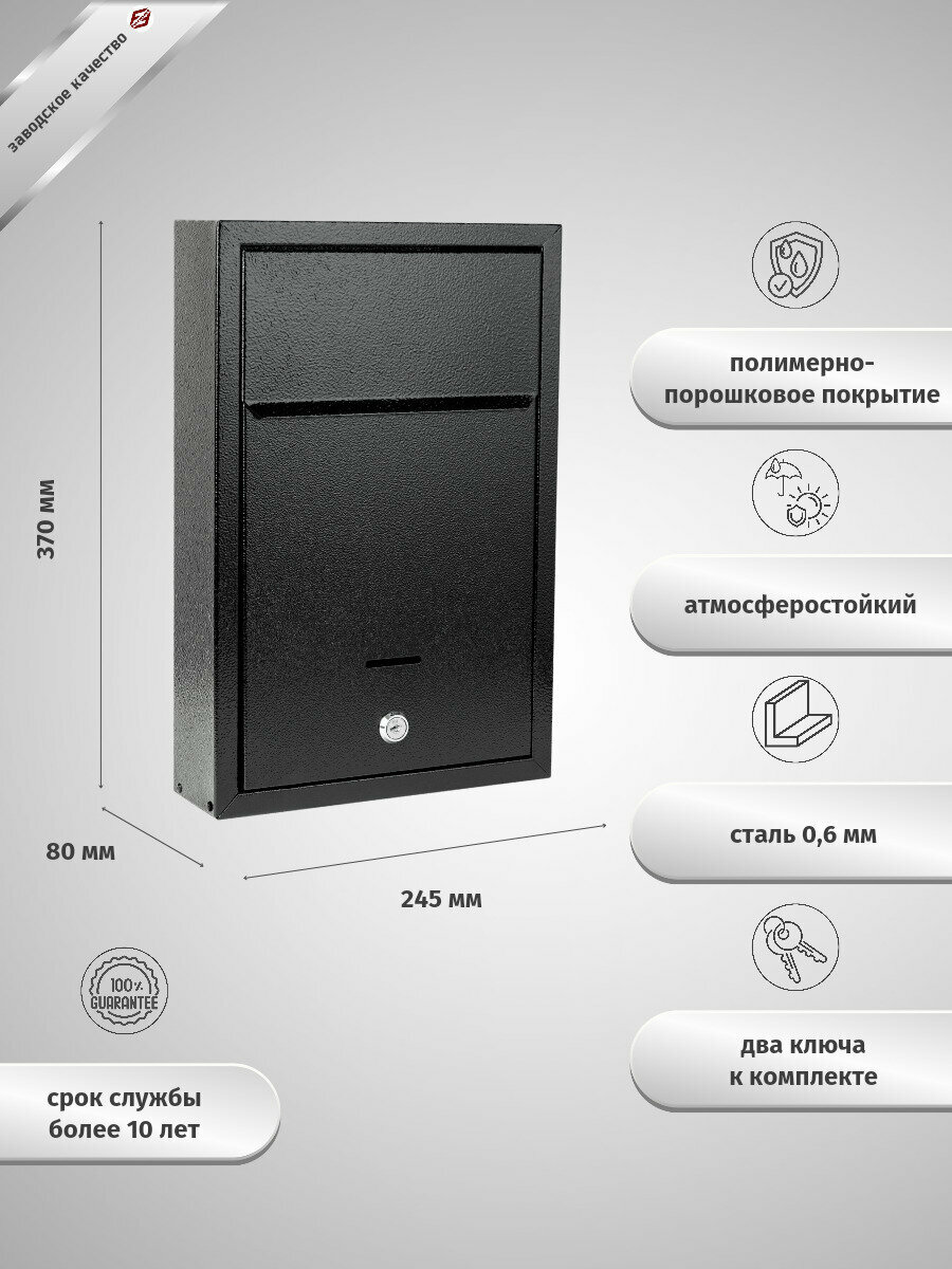 Почтовый ящик FerrumFormat альфа люкс RAL 9005 с замком интересное: