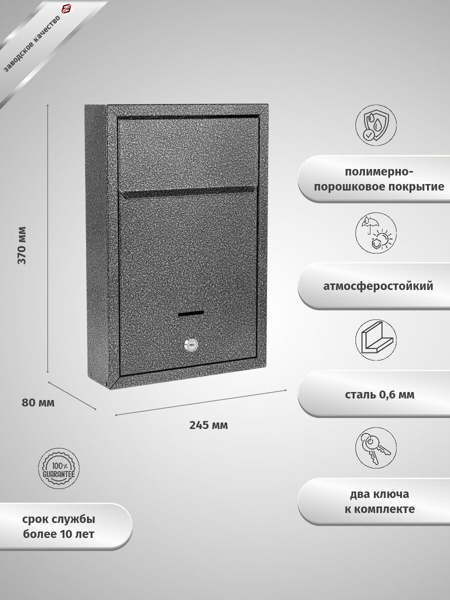 Почтовый ящик FerrumFormat альфа люкс RAL 7024 с замком