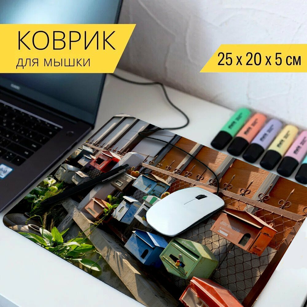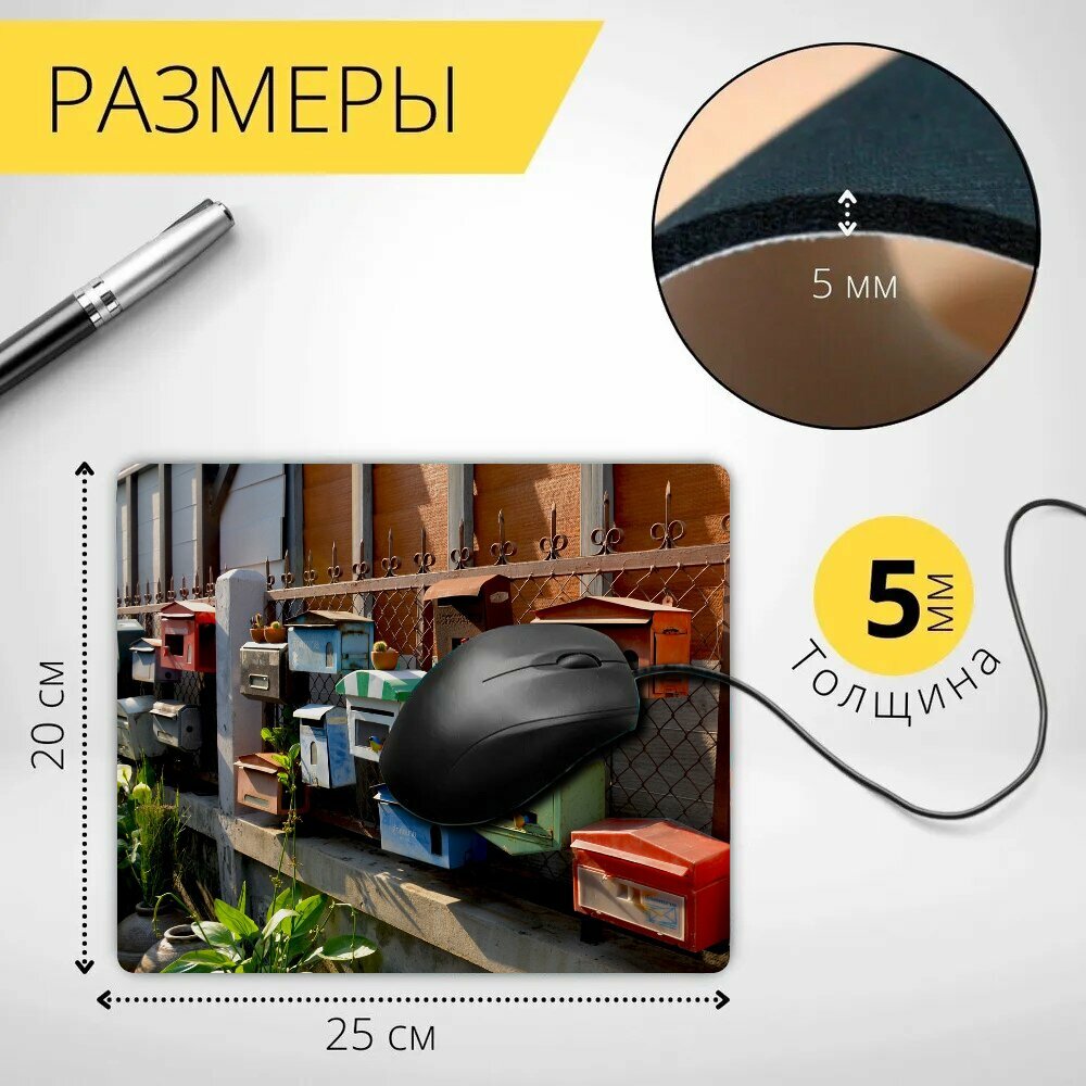 Коврик для мыши с принтом "Почта, почтовые ящики, почтовый ящик" 25x20см. интересное: