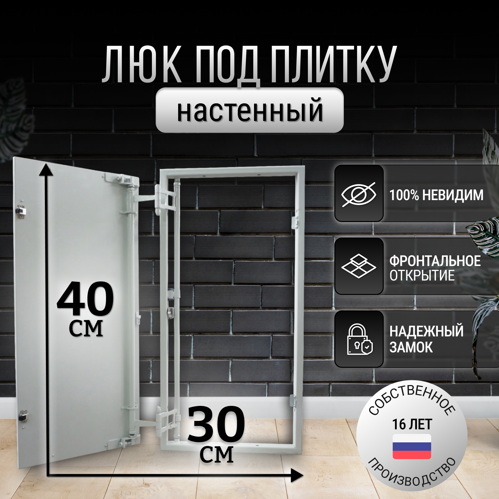 Люк ревизионный стальной под плитку 30*60 см нажимной настенный потайной скрытый сантехнический канализационный вентиляционный люк невидимка