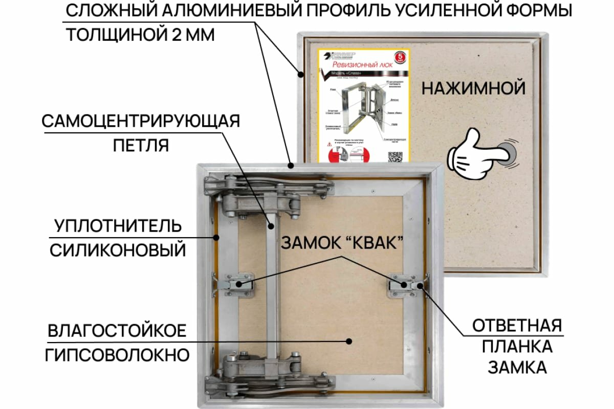 Люк ревизионный Хаммер под плитку нажимной слава, 60-60, СЛ 60-60