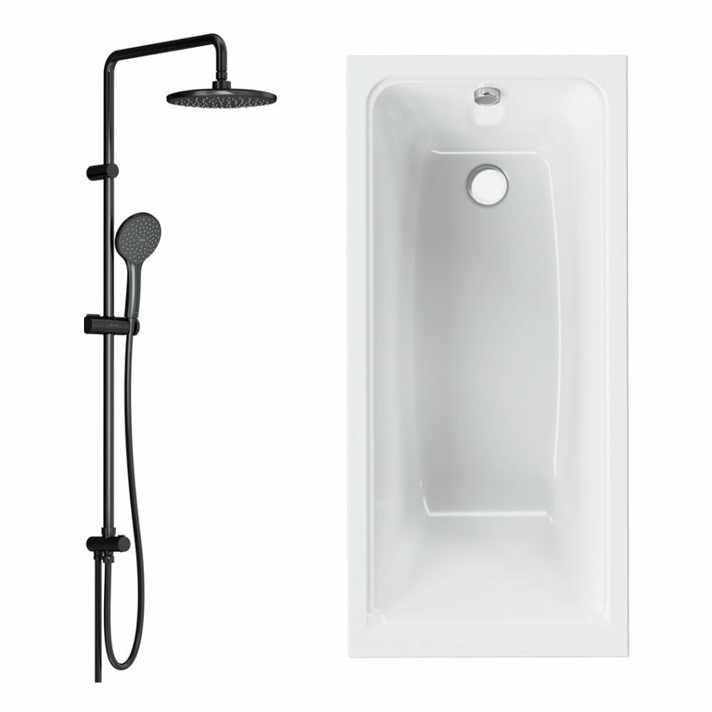 Ванна акриловая 150x70 AM.PM Gem с душевой системой Gem черный, литьевой акрил, вакуумная формовка