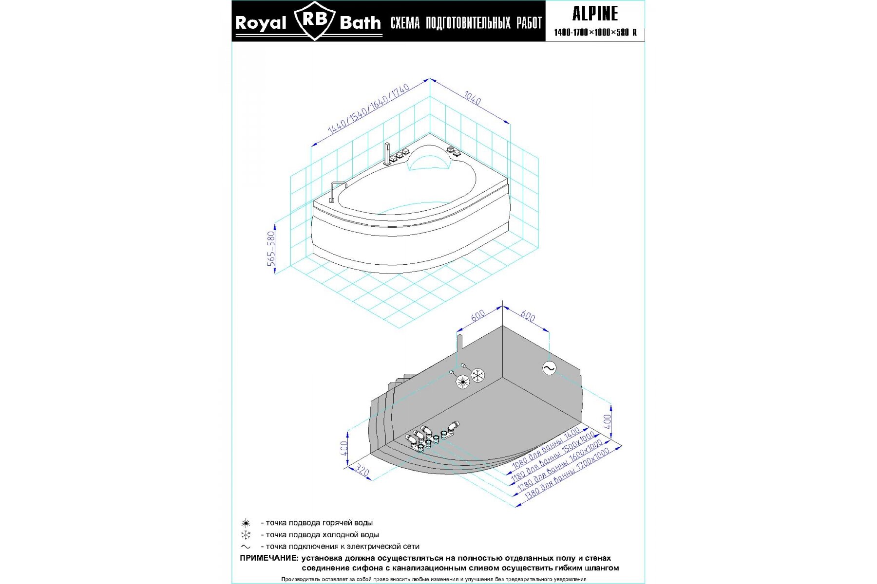 Акриловая ванна Royal Bath ALPINE 170*100 R( без каркаса и панели )