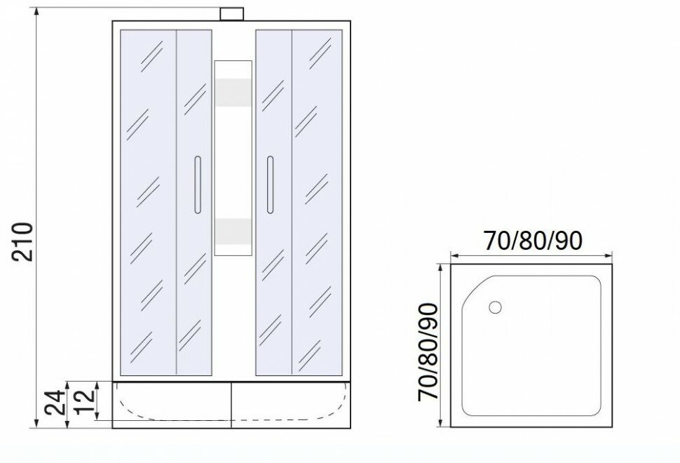 Душевая кабина мономах 70/24 S МЗ без крыши, 700*700*2100, квадрат интересное: