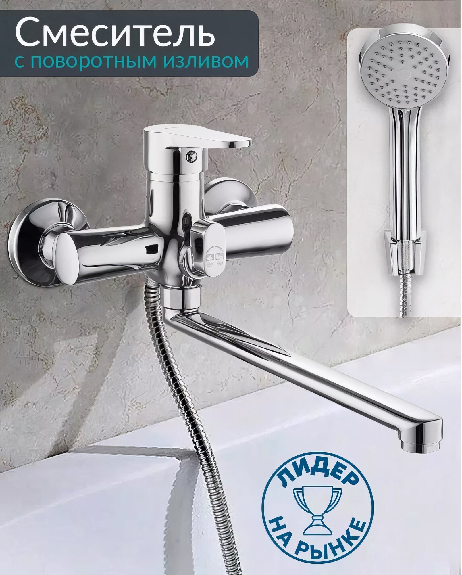 Смеситель для ванны с душем, TRIGOR C6-401, душевой кабины, с длинным изливом, кран в ванную, цвет: хром интересное: