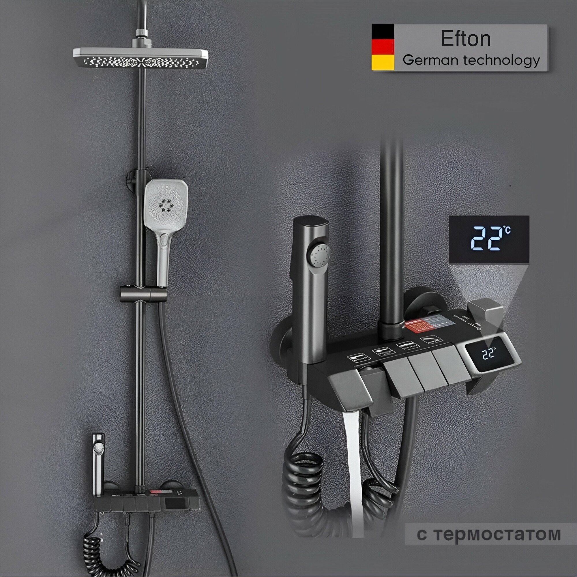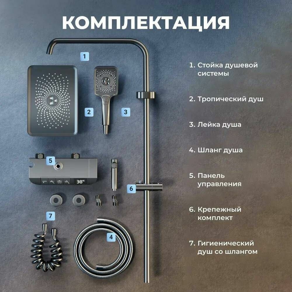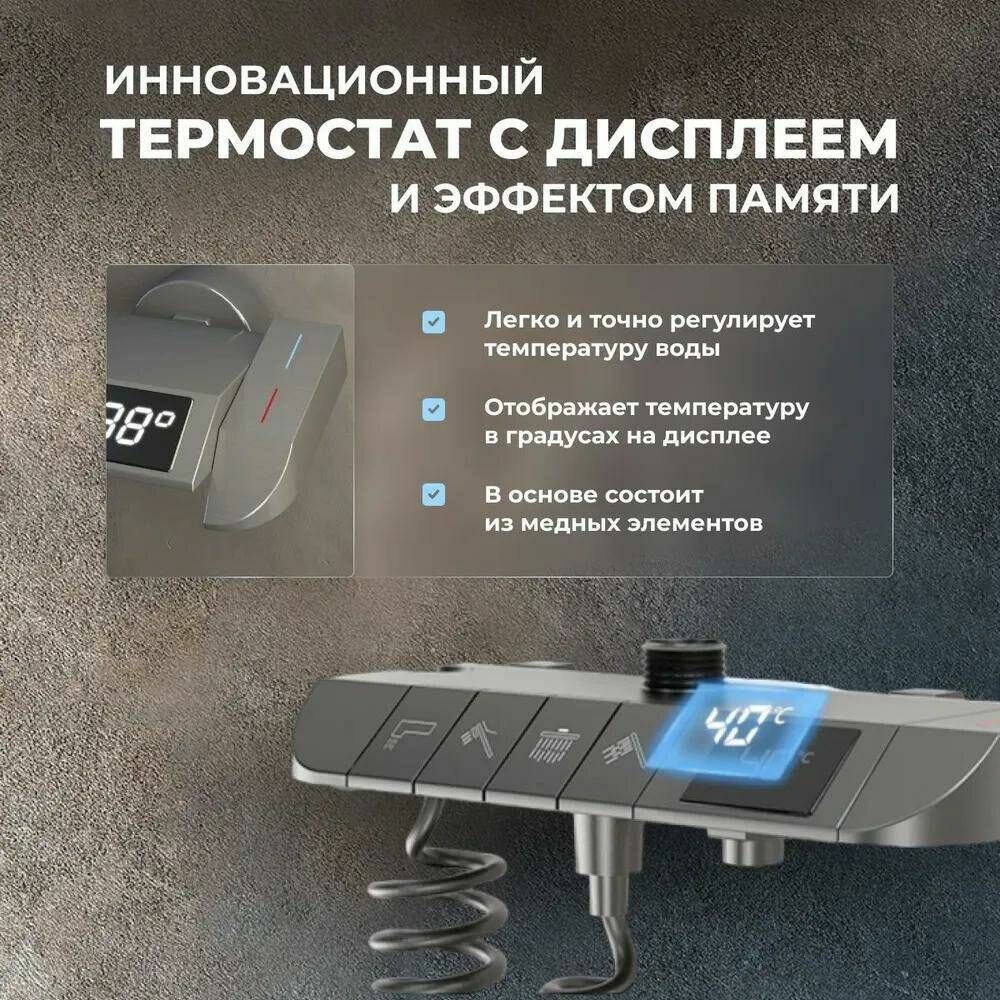 Душевой комплект с дисплеем и термостатом SPA Monza (290х290 мм) матовый черный (латунь, сталь и АБС-пластик) интересное: