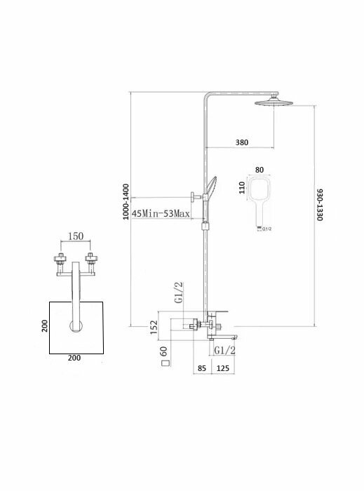 | Дополнительная информация | Шарнирно-поворотное крепление верхнего душа |