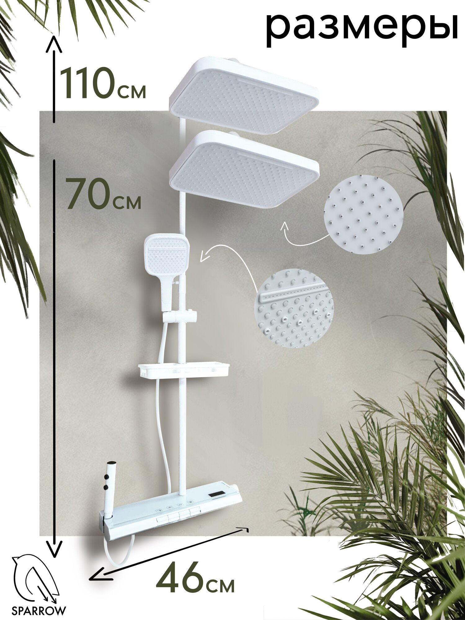 Душевая система Ederbo B&W с термостатом, дисплеем и тропическим душем (белый) интересное: