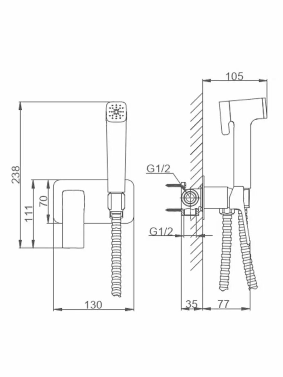 Гигиенический душ Frap F2084-9, скрытый монтаж, оружейная сталь