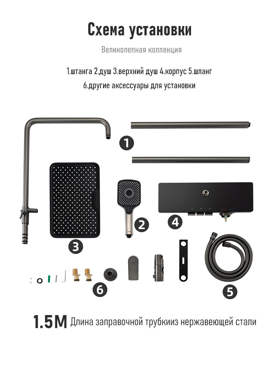 GAPPO Душевой комплект с регулировкой температуры и холода с полочкой Оружейная сталь YG2496-19 интересное: