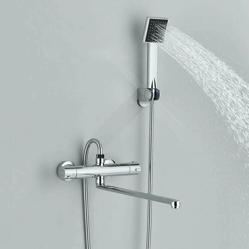 Смеситель термостатический для ванны и душа с длинным изливом и лейкой интересное: