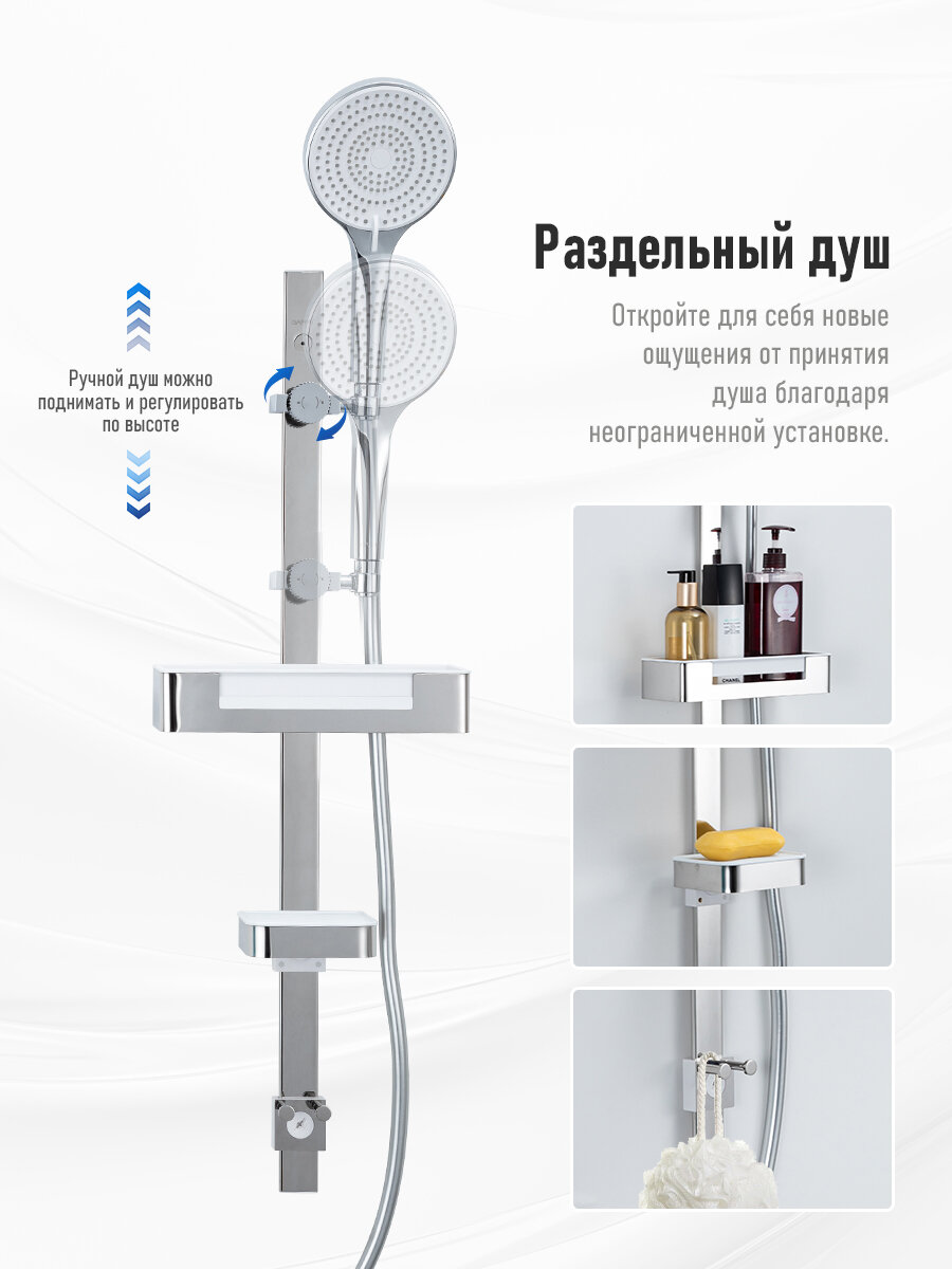 GAPPO Душевой комплект с регулировкой температуры и холода с полочкой хром YG3296-20 интересное: