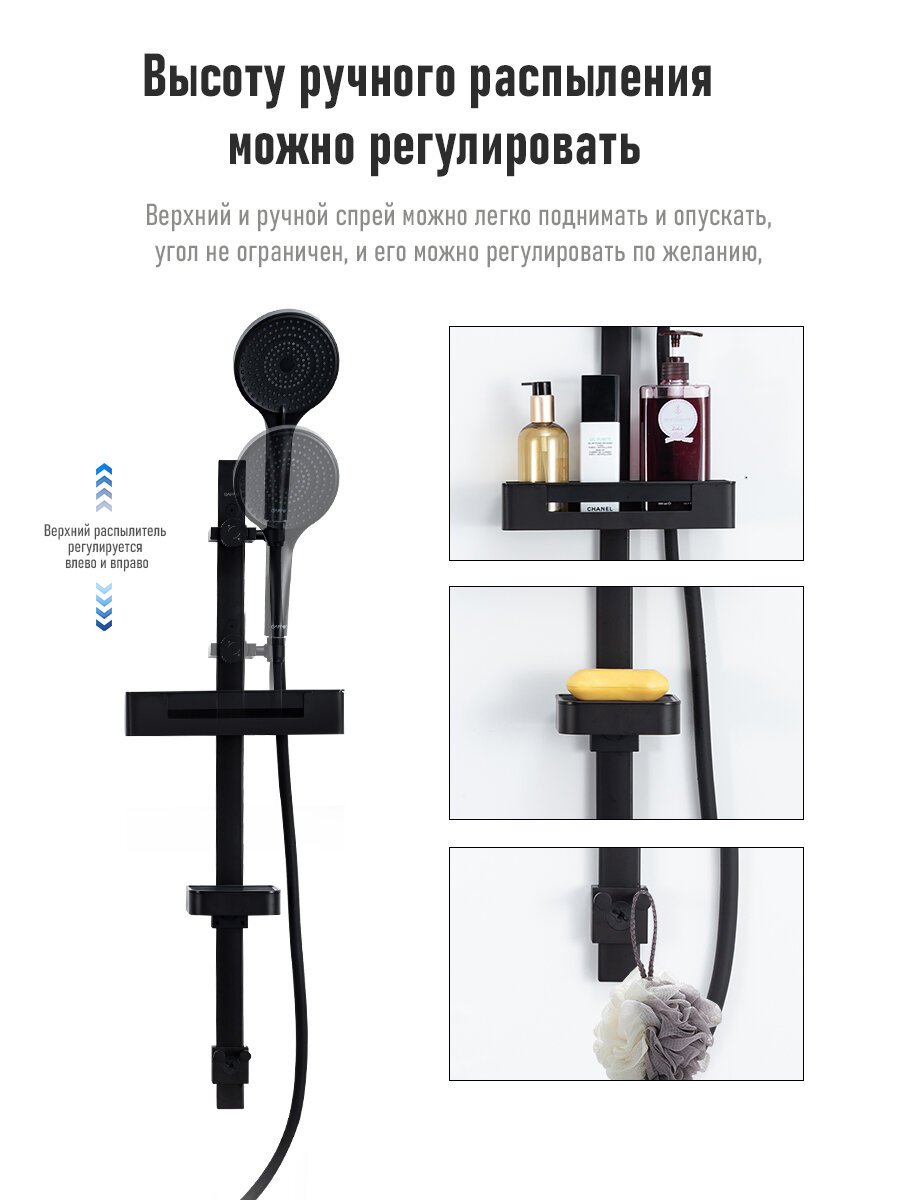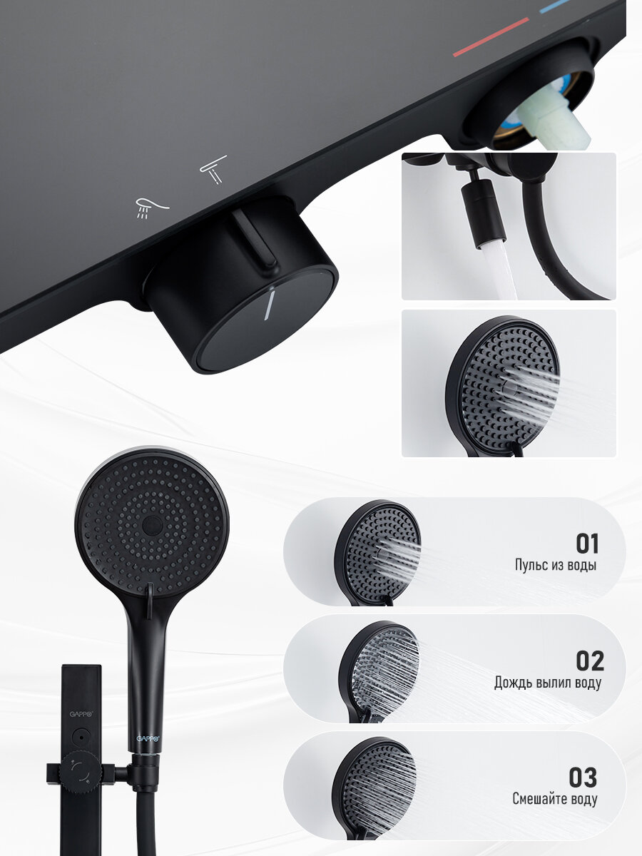 GAPPO Душевой комплект с регулировкой температуры и холода с полочкой чёрный металл YG3296-26 интересное: