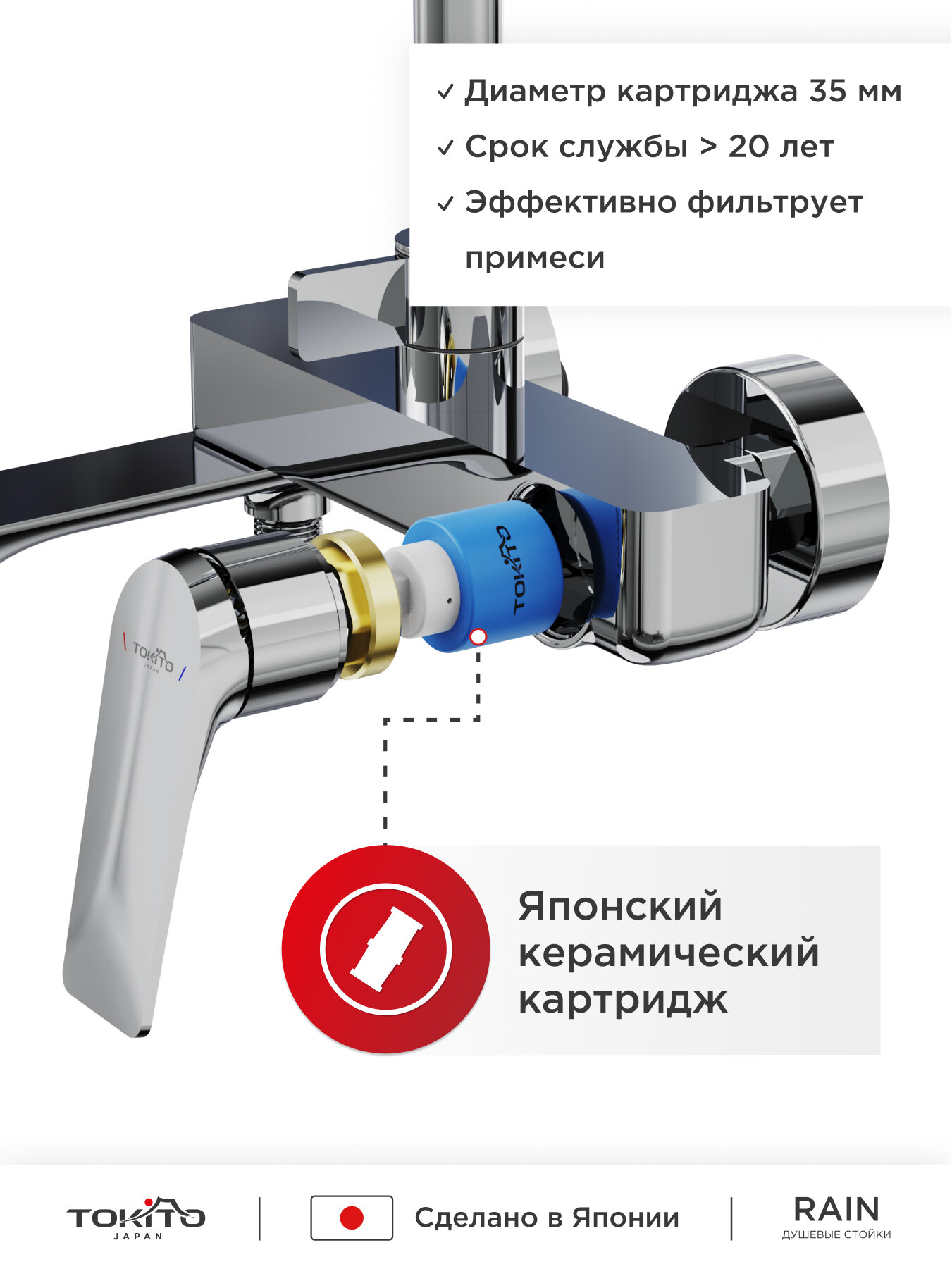 Душевая система с тропическим душем в комплекте со смесителем TOKITO TOK-RAI-1017 серия RAIN хром интересное: