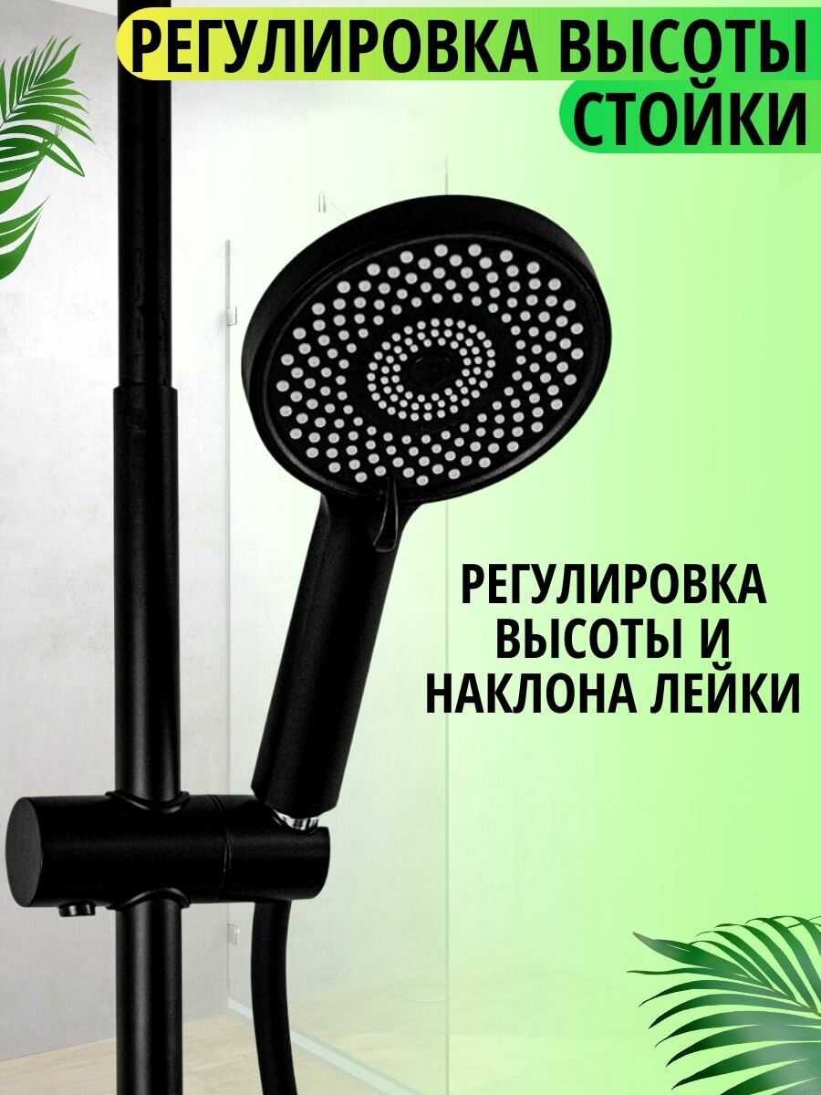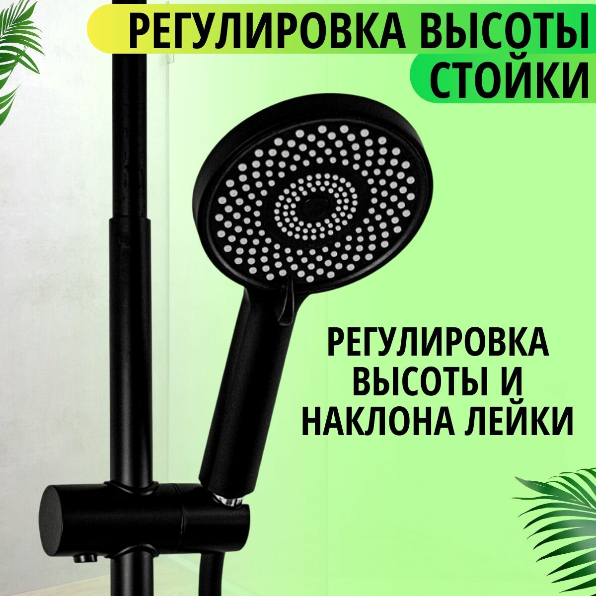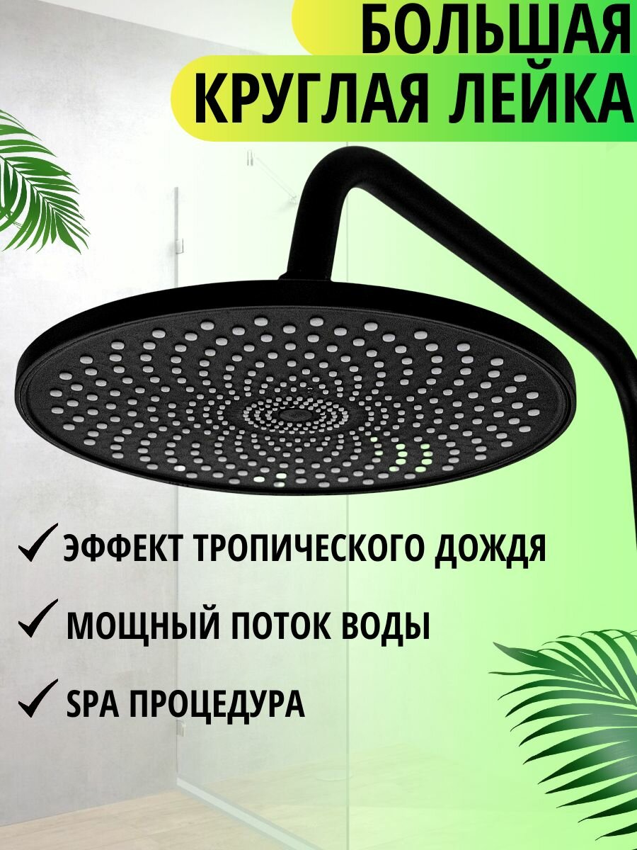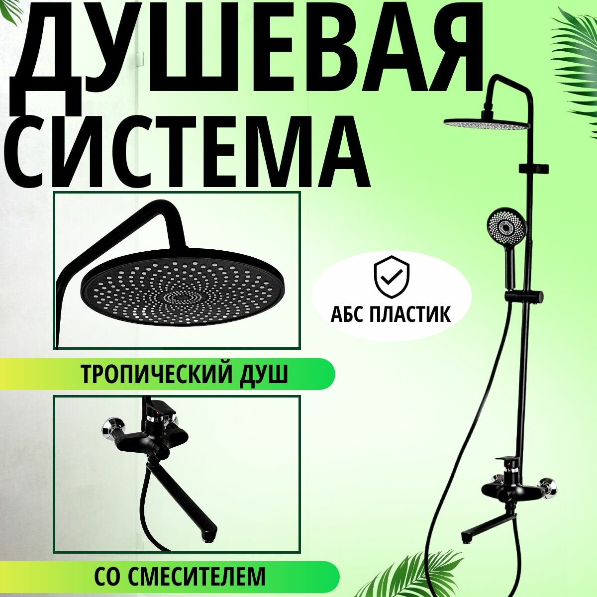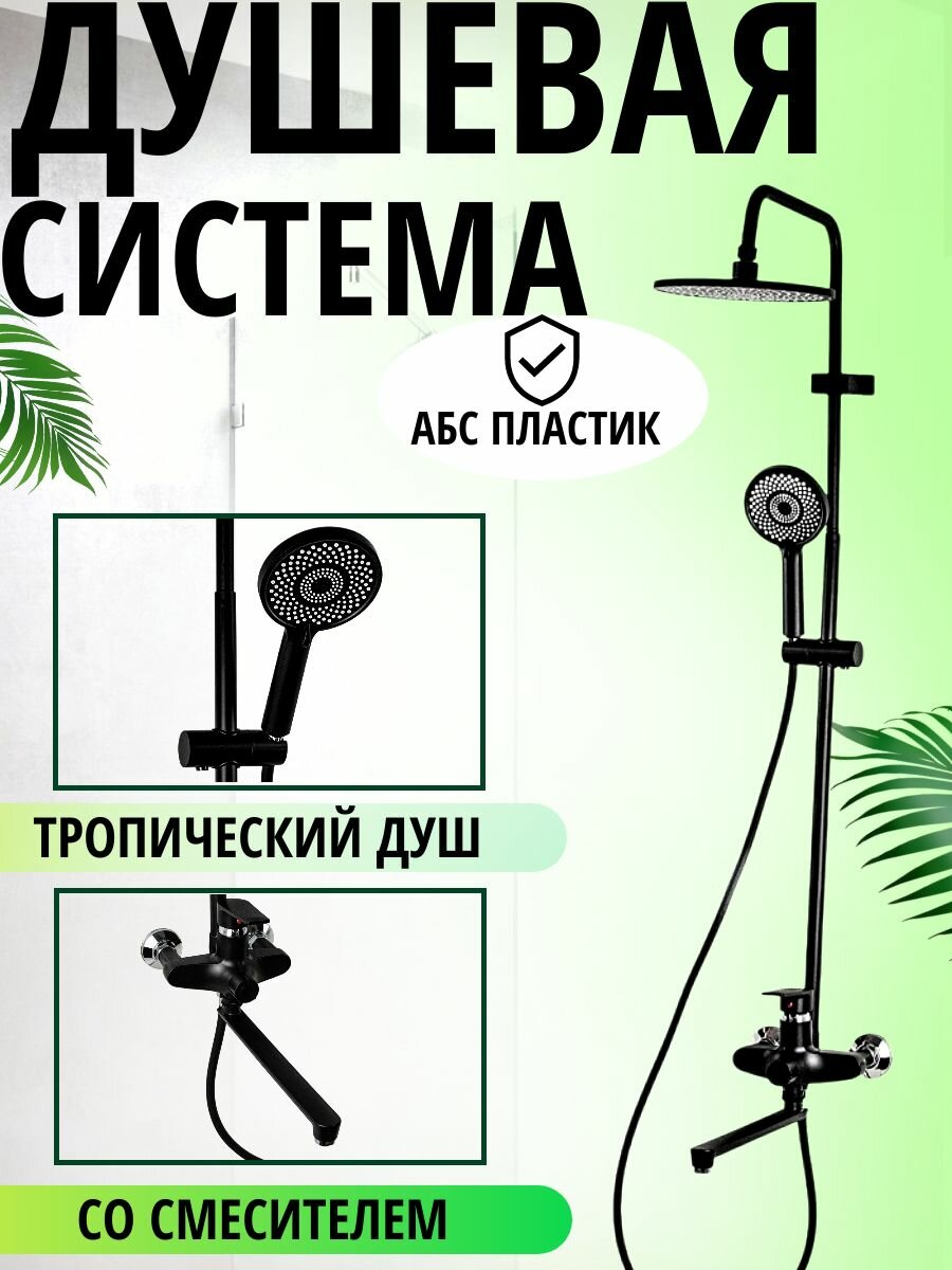 Смеситель + стойка душевая "тропический душ" с двумя лейками, корпус АБС пластик, цвет черный. интересное: