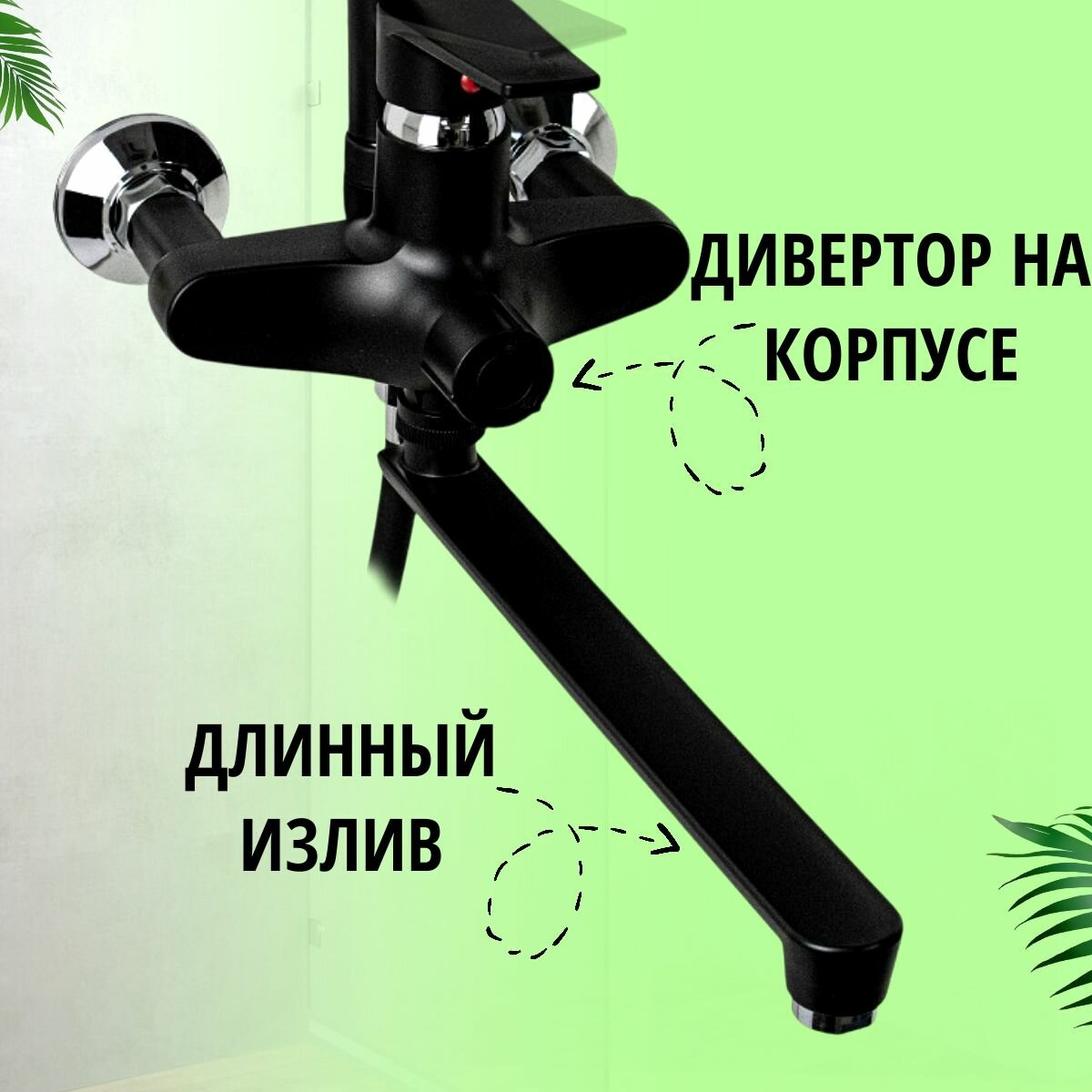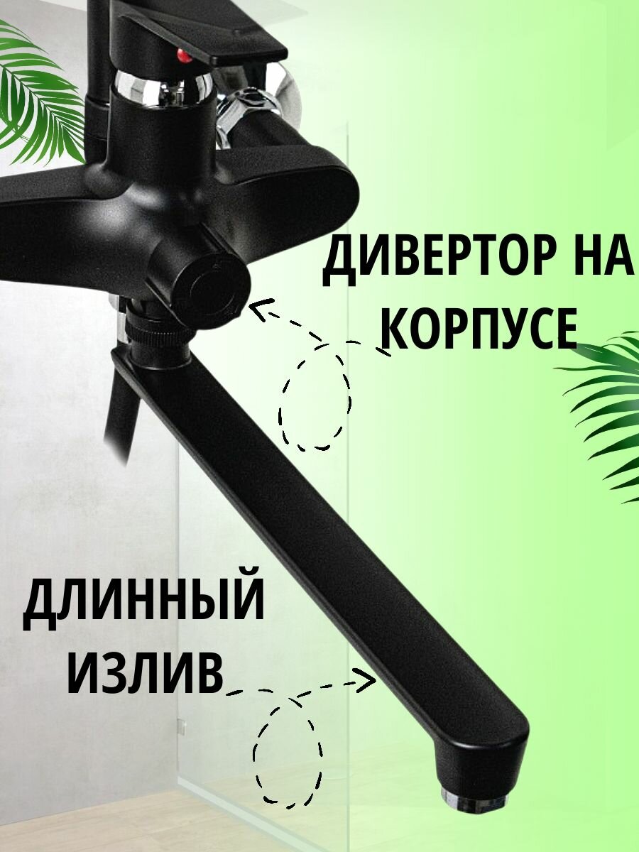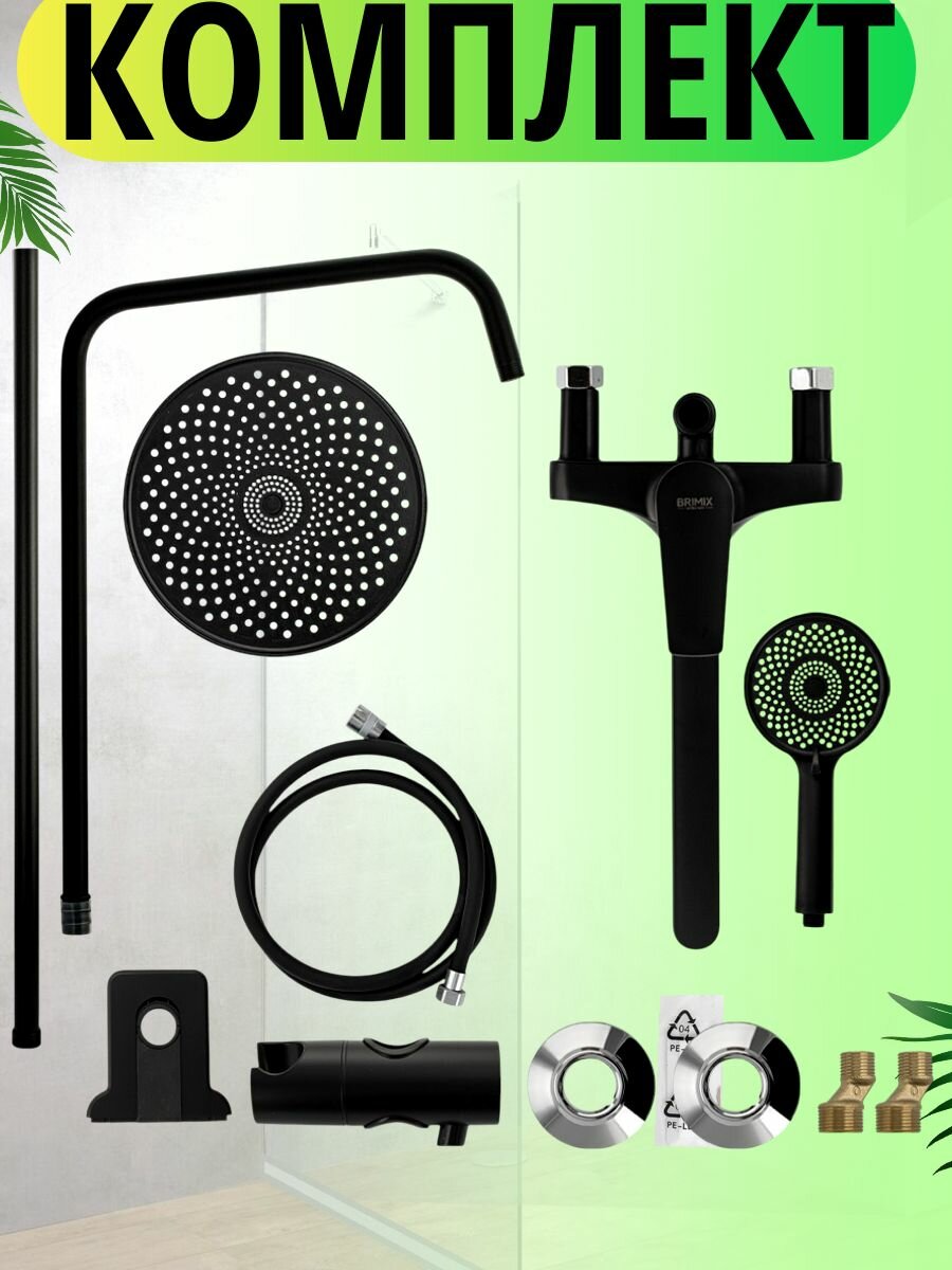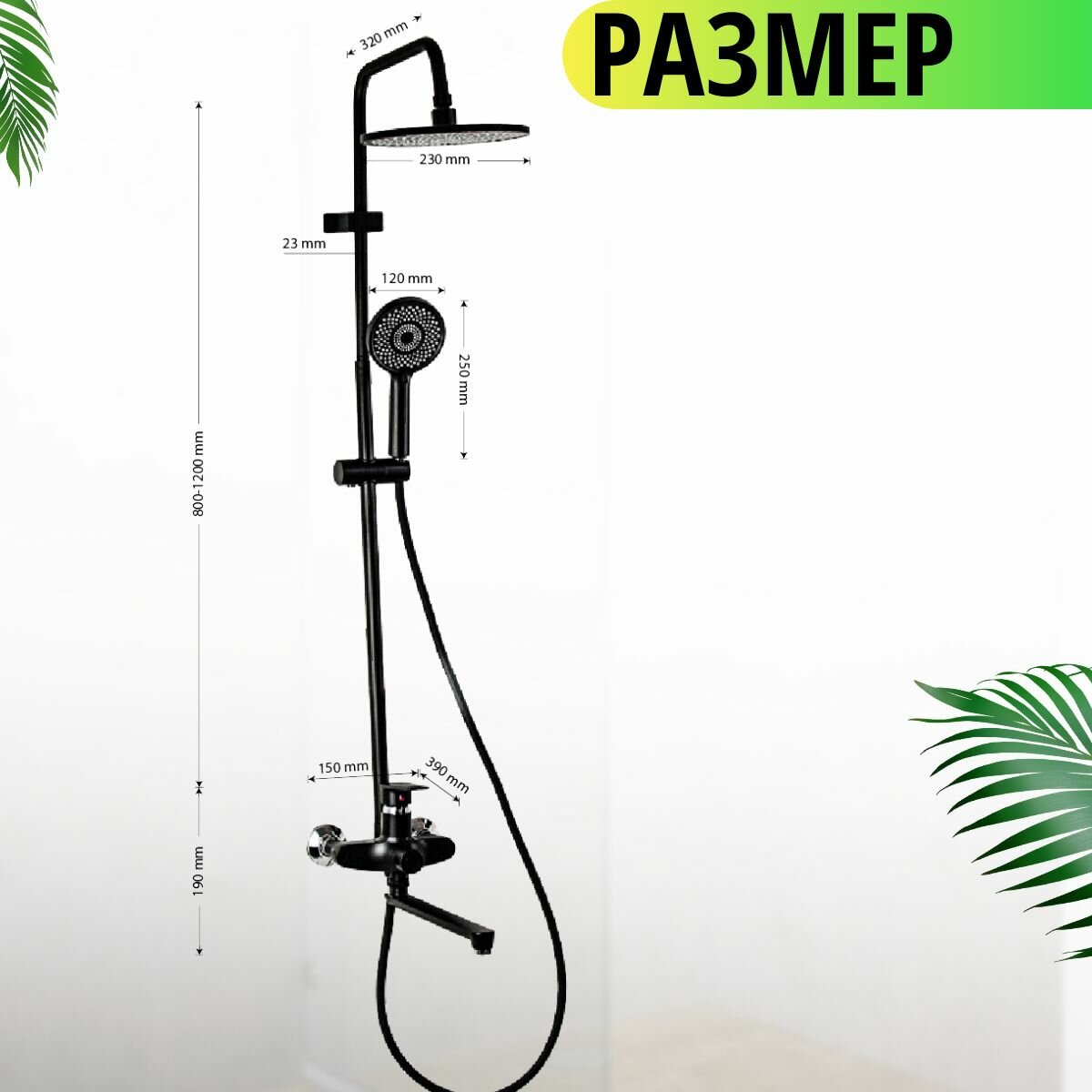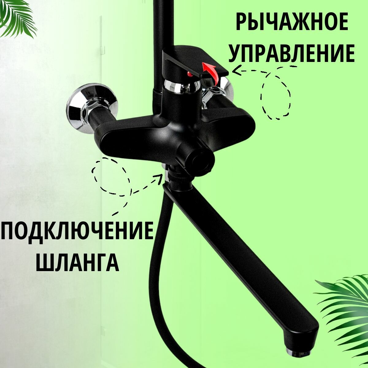 Смеситель + стойка душевая "тропический душ" с двумя лейками, корпус АБС пластик, цвет черный. интересное: