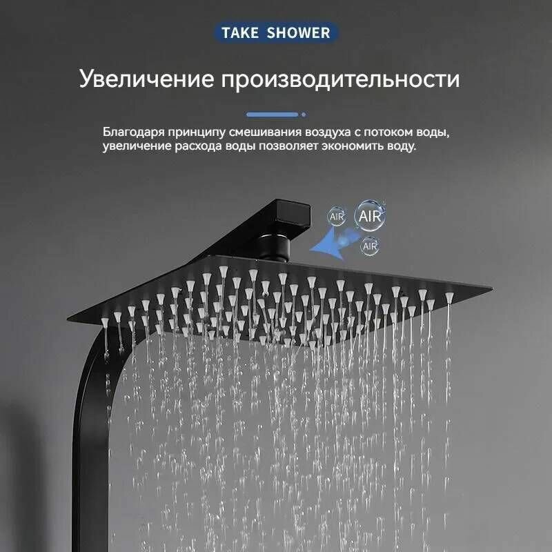 Душевой комплект SPA Palazzo (200х200 мм) матовый черный (латунь, сталь) с тропическим душем интересное: