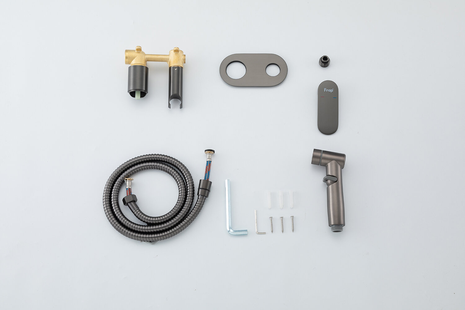 Гигиенический душ FRAP F2085-9 скрытый монтаж, оружейная сталь интересное: