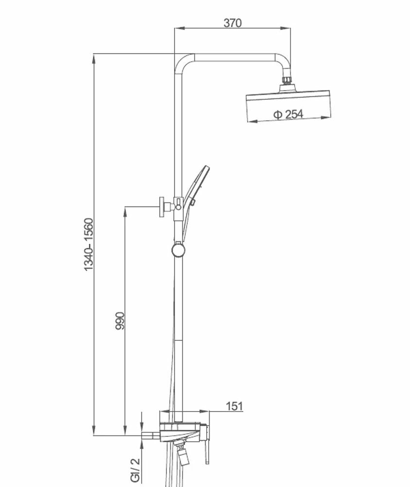 | Комплектация | верхний душ / держатель лейки / душевая стойка / излив для набора воды / лейка / набор эксцентриков / отражатель / переключатель потоков / полочка / прокладки |
