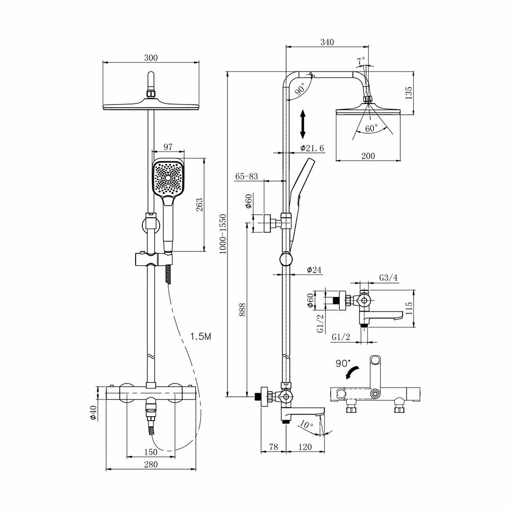 | Комплектация | верхний душ / держатель лейки / душевая штанга / лейка / Смеситель / шланг |