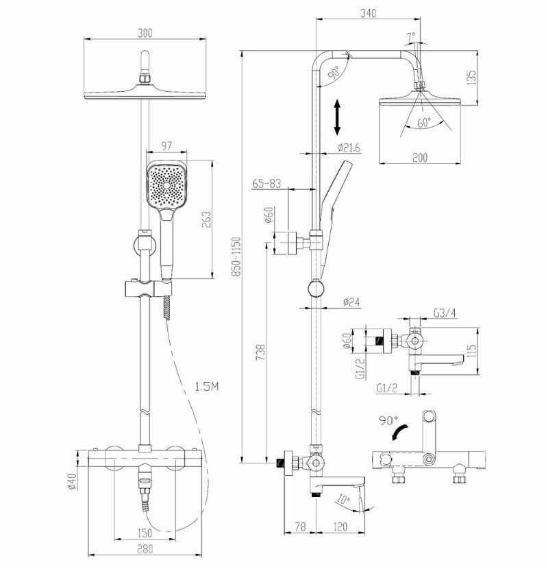 | Особенности | антиизвестковое покрытие / аэратор / регулируемый верхний душ |