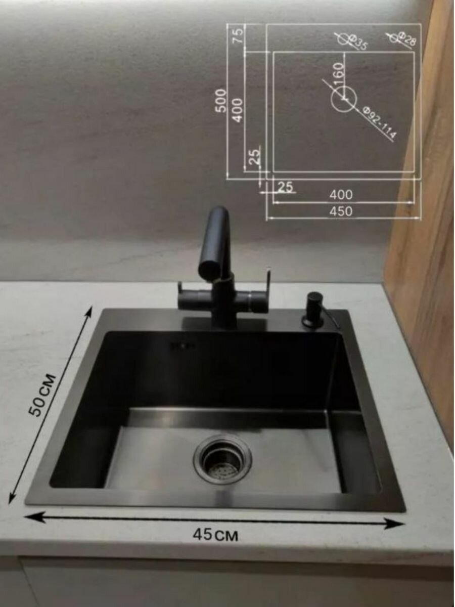 Мойка для кухни Henend 45x50B с дозатором и сушилкой