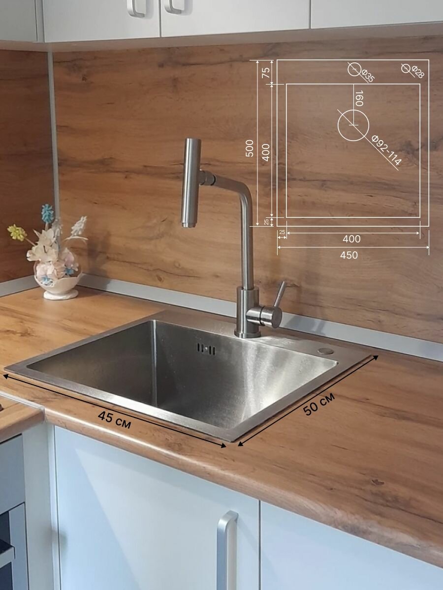 Мойка для кухни Henend 45x50 с дозатором и сушилкой