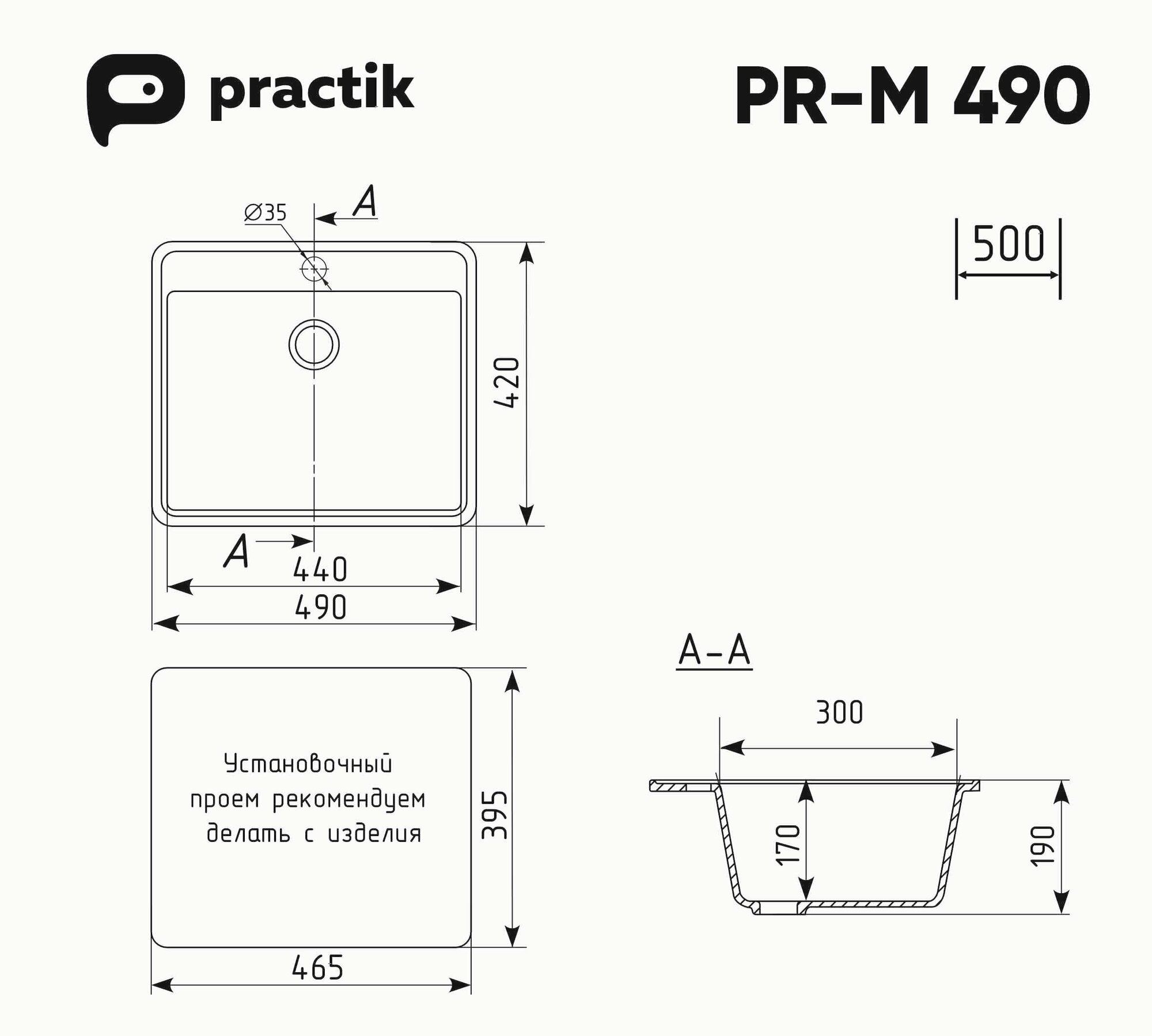 СохранитьМойка кухонная Practik из искусственного камня прямоугольная без сифона PR-M-490, цвет: черный оникс, база: 46.5х39.5 см, арт. PR-M-490-004 интересное: