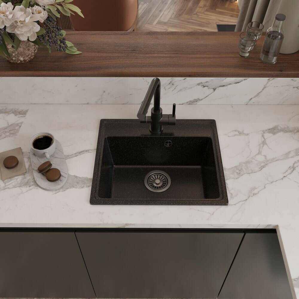 Мойка Practik PR-М 565, искусственный мрамор, черная, 56,5x49,5 см