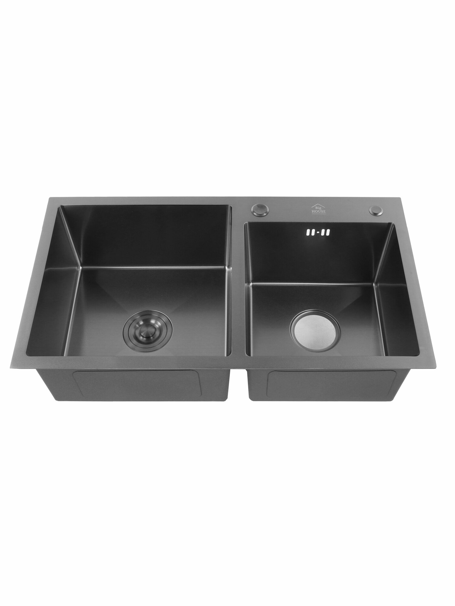 Купить Мойка врезная Big House Двойная 78х43 см, толщина 3,0х0,8 мм, глубина 215 мм, цвет Графит, сифон с переливом+ коландер