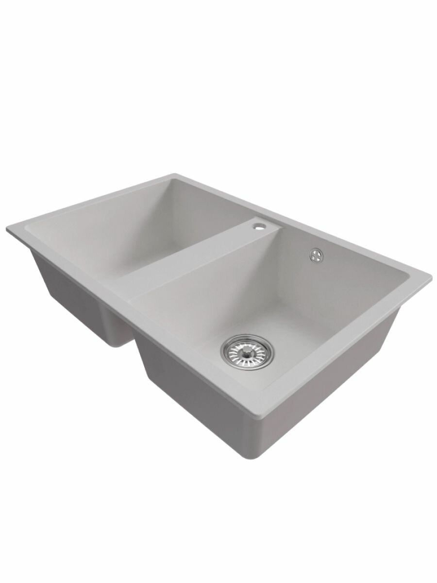 Мойка для кухни врезная прямоугольная, двухчашевая, двойная, из искусственного камня, цвет серый, 770*500*190 мм