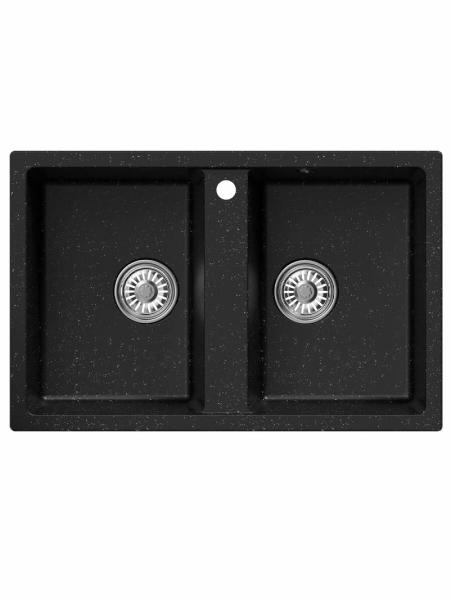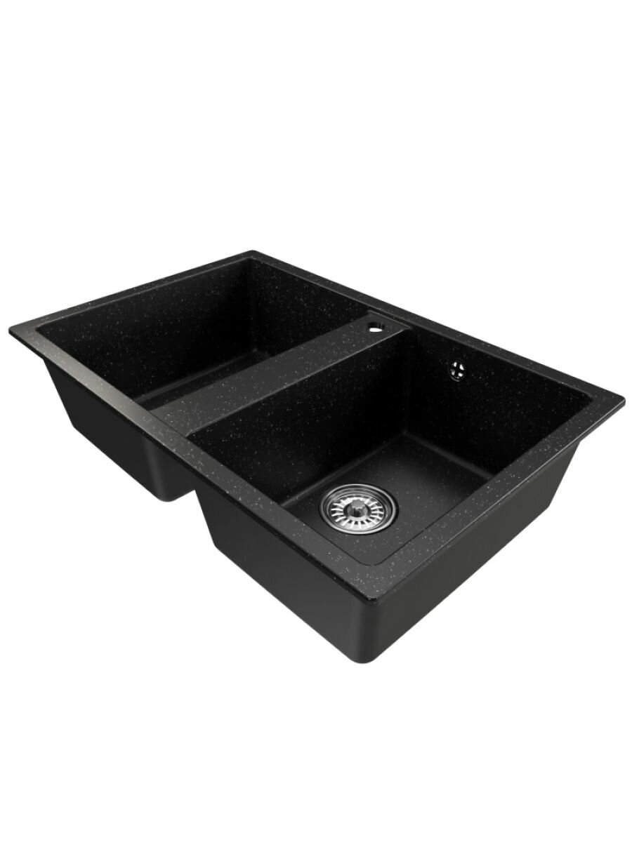 Купить Мойка для кухни врезная прямоугольная, двухчашевая, двойная, из искусственного камня, цвет черный, 770*500*190 мм