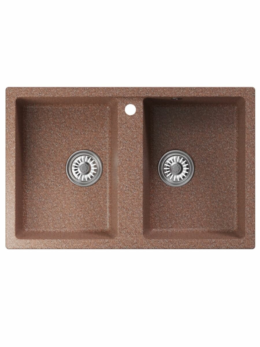 Мойка для кухни врезная прямоугольная, двухчашевая, двойная, из искусственного камня, цвет шоколад, 770*500*190 мм