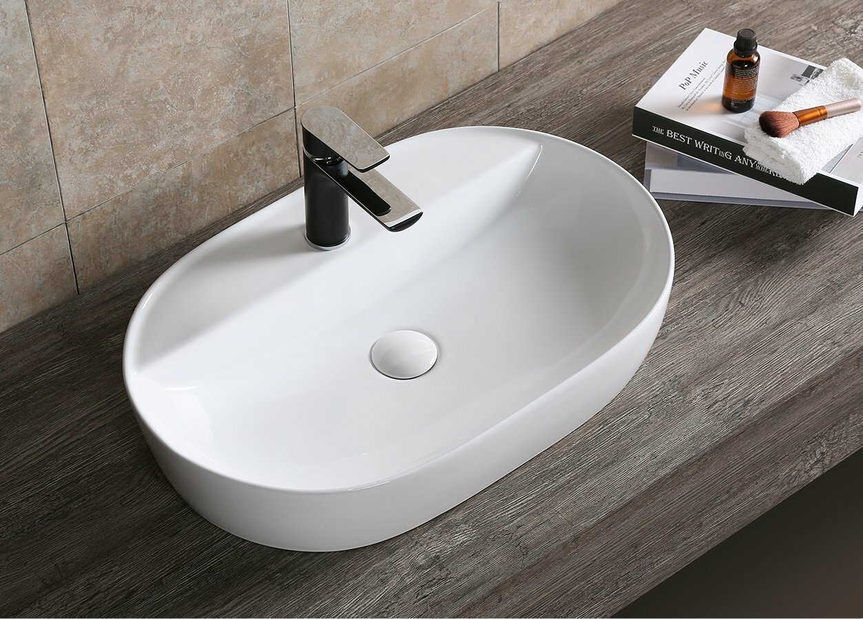 Раковина Ceruttispa CR0074 накладная, белая, овальная, с отверстием под смеситель 600х400х120
