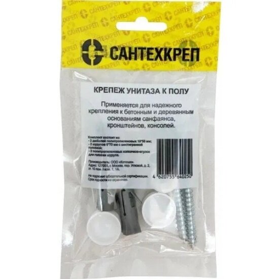 Крепеж унитаза к полу Сантехкреп белый, фирм. пакет с подвесом, ш\к