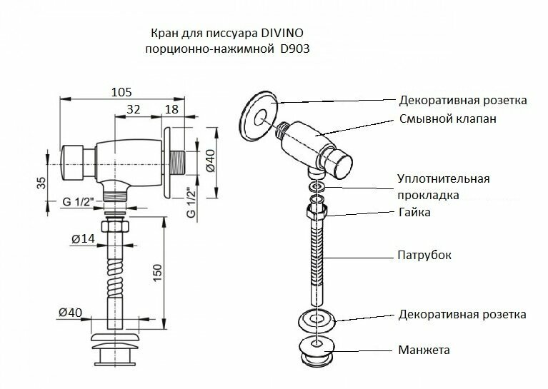 Кран сливной для писсуара DIVINO порционно-нажимной , материал-латунь, цвет-хром, гарантия 5 лет интересное: