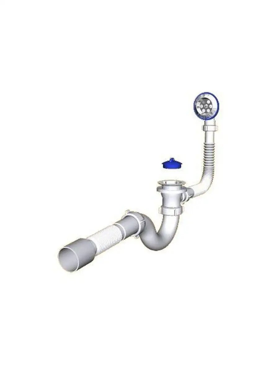Купить Сифон для ванны АНИ Пласт трубный, пробка на цепочке 1 1/2 дюйма x 40 мм, гофра, 40х50 мм, нержавеющая сетка E155 025-0044