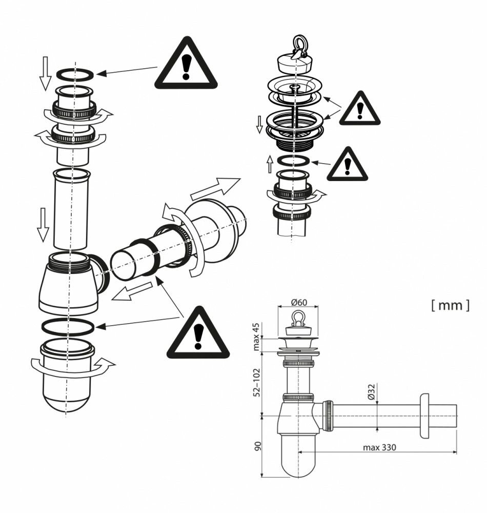 Сифон для мойки большая горловина с переливом, с отводом под сливной шланг и со съёмной корзинкой для мусора