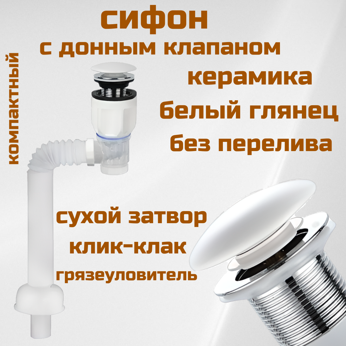 СохранитьСифон для раковины с донным клапаном без перелива белый глянцевый интересное: