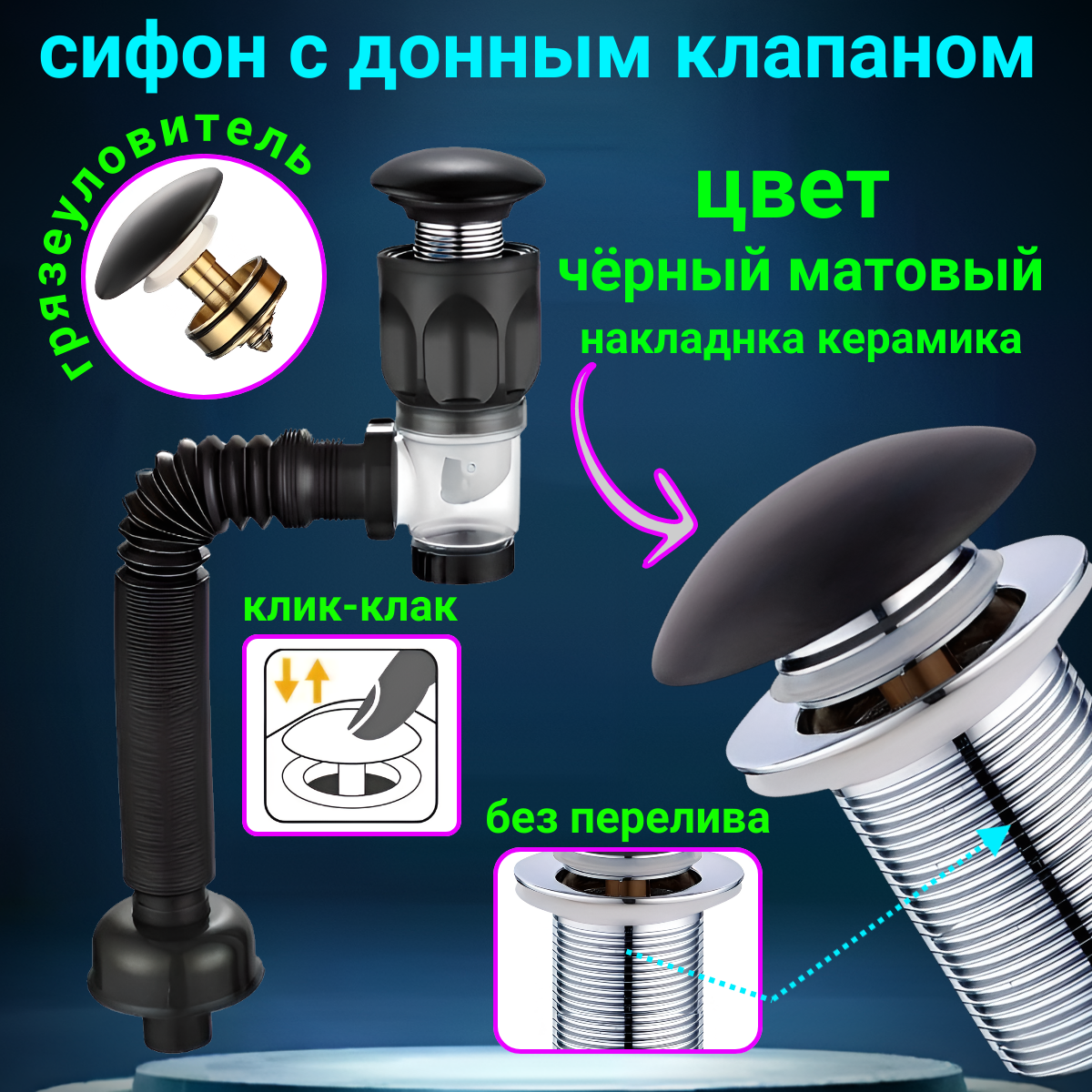 СохранитьСифон для раковины с донным клапаном без перелива черный матовый интересное: