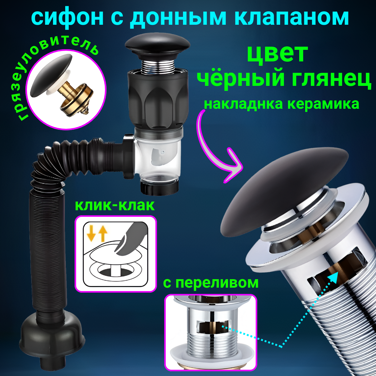 СохранитьСифон для раковины с донным клапаном с переливом черный глянцевый интересное: