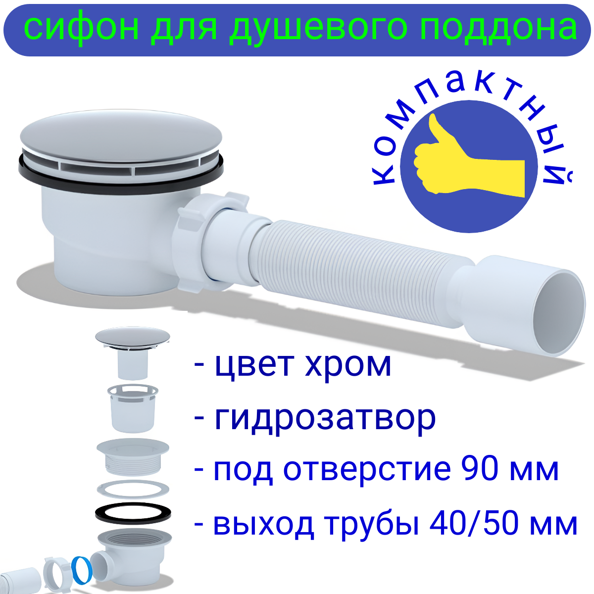 Сифон для поддона душевой кабины D-90 с гидрозатвором, в комплекте с гофрой с подключением 40/50 мм интересное: